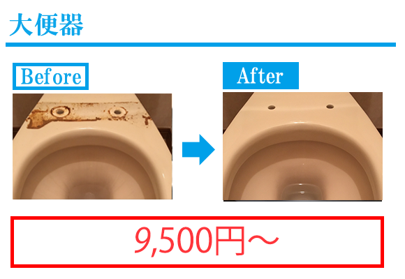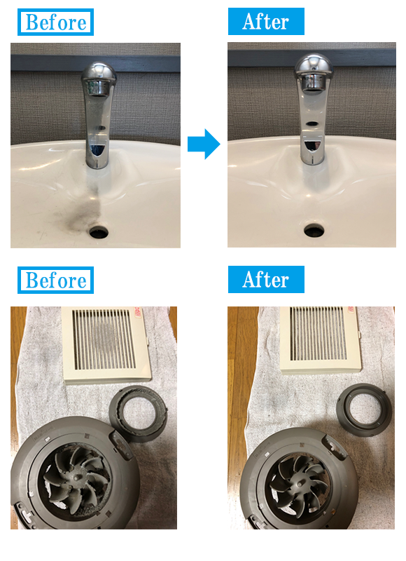 どんなに日ごろからきれいに気をつけていても、水垢や尿石など、便器は徐々にくろずんでいき、悪臭の原因になります。プロのクリーニング技術で床や天井、換気扇、水洗タンク、ウォシュレットノズルまで、しっかりきれいにしてもらい、気持ちよく使用しましょう。